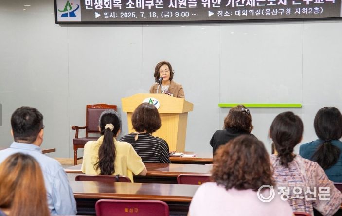 정오신문 관리자 기자 | 박희영 서울 용산구청장은 18일 구청에서 열린 ‘민생회복 소비쿠폰 지원을 위한 기간제근로자 근무교육’에서, 구민들이 원활하게 혜택을 받을 수 있도록 철저한 업무 수행을 당부했다.