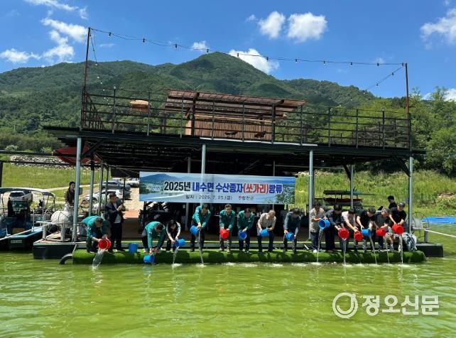 정오신문 관리자 기자 | 합천군은 25일 합천호 봉산면 일대에 전장 3cm 이상의 쏘가리 치어 1만6천여 마리를 방류했다.