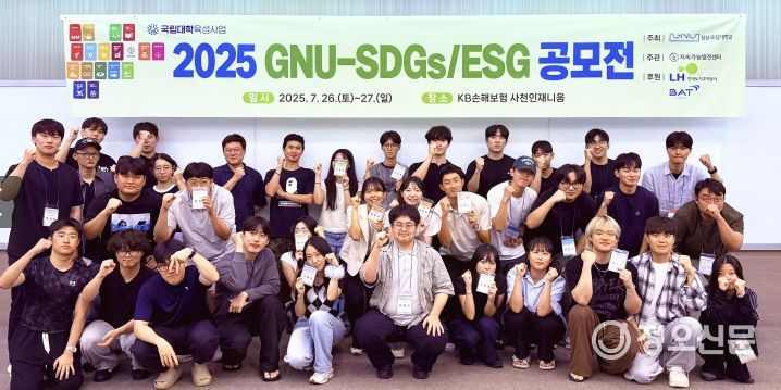 정오신문 관리자 기자 | 경상국립대학교 지속가능발전센터(센터장 김영철 회계세무학부 교수)가 주관하고 한국토지주택공사와 BAT코리아제조가 후원한 ‘2025 GNU-SDGs/ESG 공모전’ 해커톤이 7월 26~27일 KB손해보험 사천인재니움에서 개최됐다.