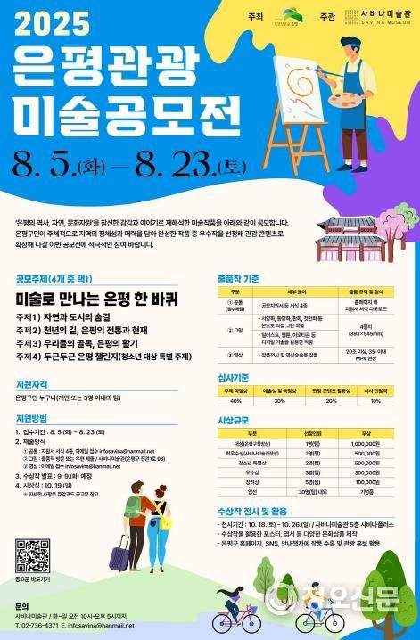 수상작은 10월 18일부터 26일까지 사비나 미술관에 전시되며, 은평 관광 홍보 상품과 홍보물로도 제작돼 지역 관광 활성화에 활용될 예정이다.