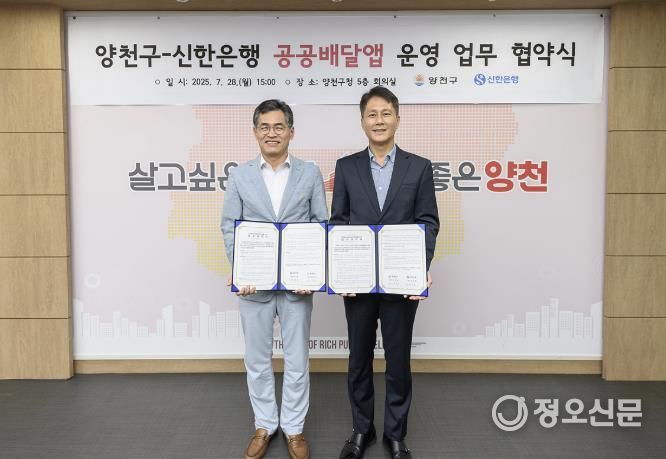 정오신문 관리자 기자 | 양천구는 지난 28일 신한은행과의 업무협약을 통해 민관협력형 공공배달앱을 도입하고, 지역 내 소상공인과 소비자 상생을 위해 오는 8월 8일부터 배달전용 ‘양천땡겨요상품권’을 발행한다.