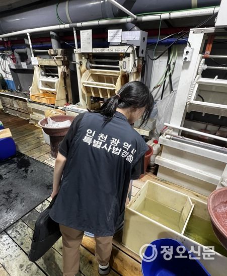 정오신문 관리자 기자 | 인천광역시 특별사법경찰은 지난 6월 30일부터 7월 9일까지 장마철을 맞아 폐수 발생 사업장을 대상으로 기획수사를 실시한 결과, 물환경보전법을 위반한 6개 업소를 적발했다고 밝혔다.