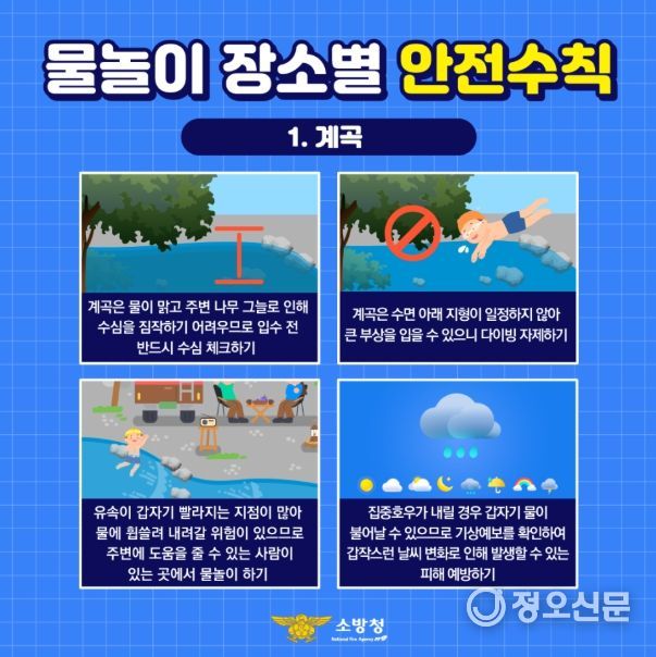 이에 따라 소방서는 물놀이 장소별 필수 안전수칙을 적극 홍보하고 있다.