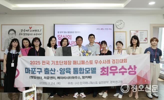 정오신문 관리자 기자 | 마포구는 7월 24일, ‘제15회 2025 전국 기초단체장 매니페스토 우수사례 경진대회’에서 ‘인구구조 변화 대응’ 분야 최우수상을 수상했다.