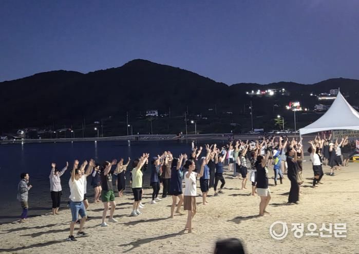 지난 7월 22일부터 매주 화목요일 저녁 8시부터 9시까지 진행되는 ‘별빛해변운동교실’은 시원한 바닷바람과 별빛 아래에서 음악과 함께 스트레칭, 유산소운동, 근력강화운동 등 다양한 프로그램으로 시민들의 건강증진에 기여하고 있다.