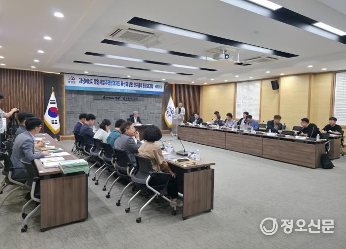 정오신문 관리자 기자 | 영광군은 지난 25일 군수왈 관련 업무 실·과장 등이 참석한 가운데 ‘영광군 재생에너지 발전사업 주민 참여제도 활성화 방안 수립 연구용역’ 최종보고회를 실시했다고 밝혔다.