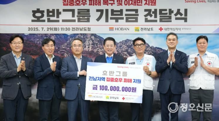 김영록 지사는 “어려운 시기에 도움을 준 호반그룹에 깊이 감사드린다”며 “도민이 조속히 생활 안정을 되찾고 피해 지역이 신속히 복구되도록 최선을 다하겠다”고 강조했다.