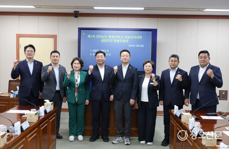 정오신문 관리자 기자 | 전라남도의회 전라남도 통합대학교 국립의과대학 설립 지원 특별위원회(이하“의대 특위”라 한다)가 지난 7월 28일 첫 회의를 개최하고, 신민호 의원(더불어민주당·순천6), 최선국 의원(더불어민주당·목포1)을 공동위원장으로 부위원장에는 박현숙 의원(더불어민주당·비례)을 선출했다.