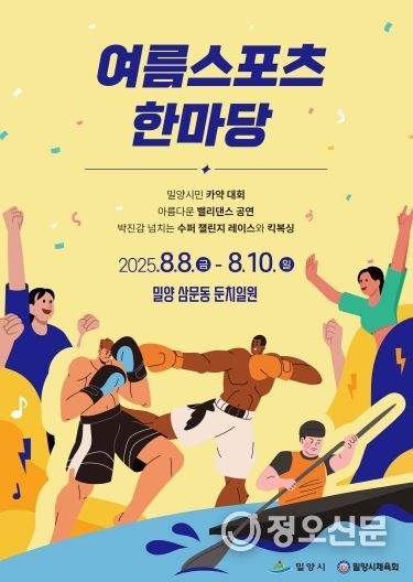 정오신문 관리자 기자 | 밀양시는 오는 8월 8일부터 10일까지 삼문동 둔치 일원에서 ‘2025 밀양 수퍼 페스티벌’의 대표 프로그램인 ‘여름 스포츠 한마당’을 운영한다고 밝혔다.