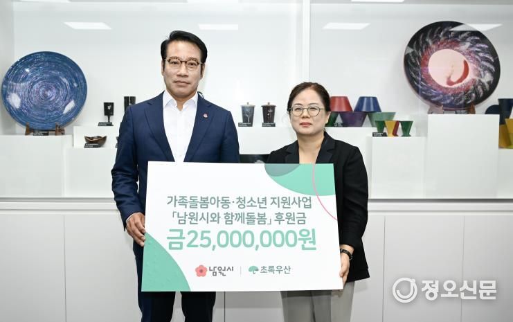 정오신문 관리자 기자 | 남원시는 초록우산 전북지역본부와 함께 7월 30일 가족돌봄아동지원사업을 통해 돌봄 공백에 놓인 아동에게 2,500만 원의 후원금을 지원했다고 밝혔다.