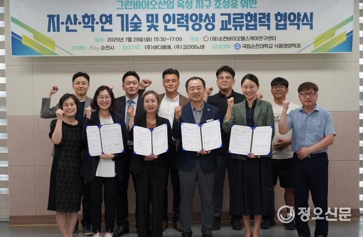협약에는 ▲㈜코리아노바 ▲어업회사법인 ㈜바다품애 ▲국립순천대학교 식품영양학과가 참여했으며, 기술 교류, 공동 연구, 현장 중심의 인재 양성 등을 함께 추진해 나가기로 했다.