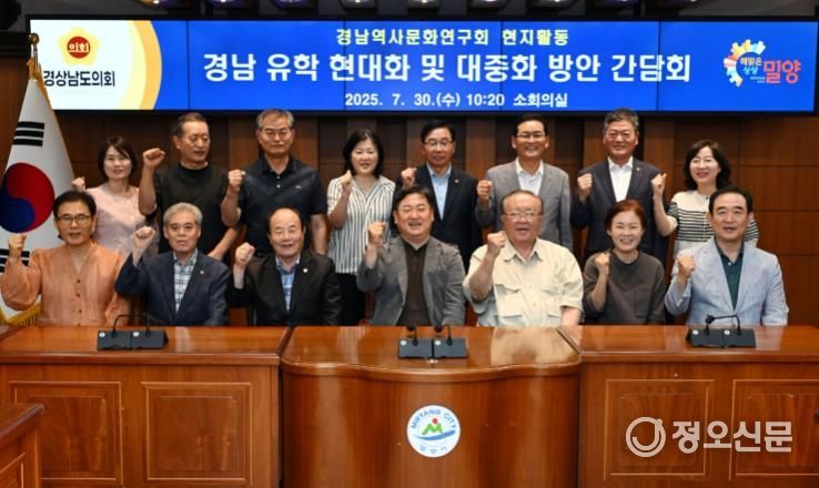 둘째 날에는 밀양시청 소회의실에서 '경남 유학 현대화·대중화 방안' 간담회를 열고, 유림·향토청년회 등 지역 공동체, 도·시 관계자와 함께 실행 가능한 정책과제를 점검했다.
