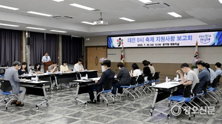 정오신문 관리자 기자 | 대전 중구는 8월 개최되는 ‘대전 0시 축제’의 안전한 축제 개최를 지원하기 위한 특별전담팀(T/F팀)을 구성하고, 30일 보고회를 개최했다.