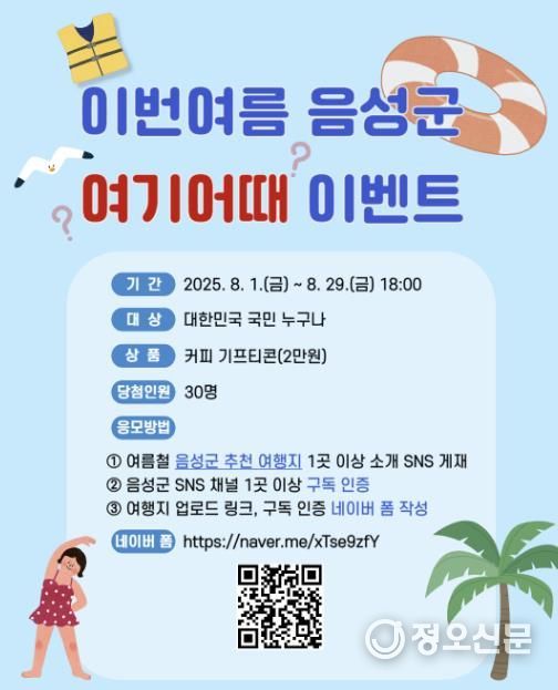 정오신문 관리자 기자 | 음성군이 본격적인 여름 휴가철을 맞아 대한민국 국민 누구나 참여할 수 있는 특별한 SNS 이벤트를 진행한다.