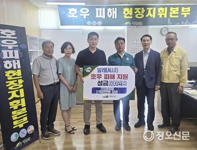 정오신문 관리자 기자 | 예산군은 건강기능식품 판매업체 알레(ALLE)의 김시황 대표가 최근 집중호우로 피해를 입은 이재민을 위해 건강기능식품 7종 1만3000개(약 1억5000만원 상당)와 성금 600만원을 기탁했다고 밝혔다.