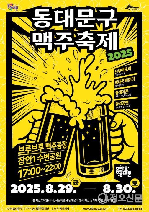 정오신문 관리자 기자 | 동대문문화재단은 오는 8월 29일부터 30일까지 이틀간 장안1수변공원 일대에서 ‘2025 동대문구 맥주축제’를 개최한다.