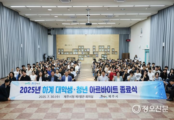 정오신문 관리자 기자 | 제주시는 30일 시청 1별관 회의실에서 ‘2025년 하계 대학생·청년 아르바이트’ 종료식을 개최했다.