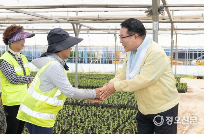 정헌율 시장과 익산시 자율방재단 등도 목천동을 찾아 쉼터 현장을 살피고 근로자들을 격려했다.