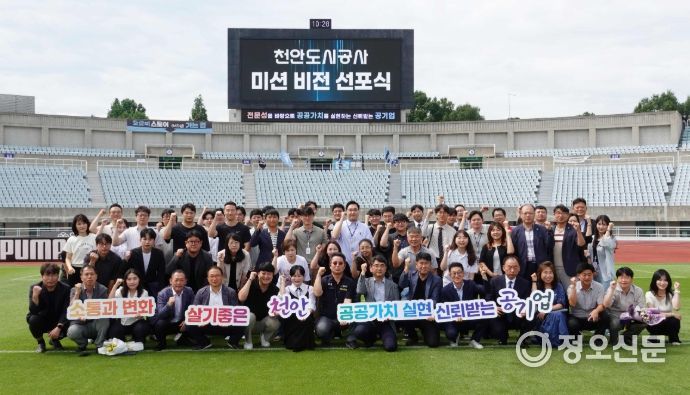 정오신문 관리자 기자 | 천안도시공사는 31일 본부 대회의실에서 신규 미션・비전 선포식을 개최했다.
