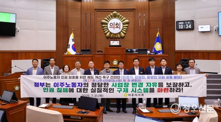 이번 건의안을 통해 나주시의회는 대한민국 산업 현장의 필수적인 노동력으로 자리 잡은 이주노동자들이 여전히 법과 제도의 사각지대에서 인권 침해를 겪고 있는 현실에 대해정부의 책임 있는 자세와 구조적 개혁을 촉구했다.