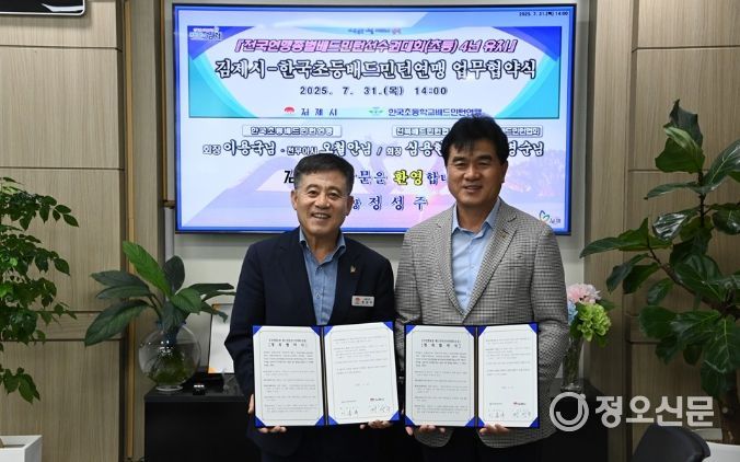 정오신문 관리자 기자 | 김제시는 지난달 31일 한국초등배드민턴연맹(회장 이용국)은 초등 배드민턴 대회 육성과 시 스포츠 마케팅 활성화를 위해 힘을 모아 협력하기로 협약했다고 밝혔다.