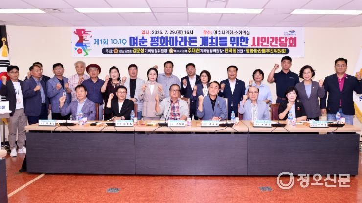 정오신문 관리자 기자 | 여수시의회는 지난 29일 소회의실에서 ‘제1회 10·19 여순 평화마라톤 개최를 위한 시민간담회’를 열어 대회의 안전·교통 대책·예산 확보 방안을 논의하며 시민 의견을 폭넓게 청취했다.