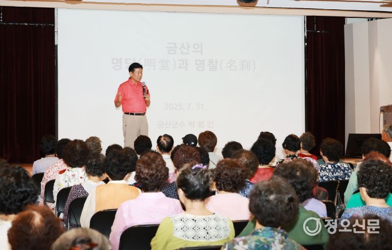 이번 강연은 ‘양생’ 금산행복대학 교육과정의 일환으로 지역 어르신들에게 금산의 풍수적 가치와 역사적 명소를 알리고 고장에 대한 자긍심을 높이기 위한 취지로 마련됐다.