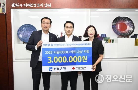 정오신문 관리자 기자 | 남원시는 8월 1일 전북은행에서 시원(COOL) 키트 60상자(환가액 300만 원)를 기부했다고 밝혔다.