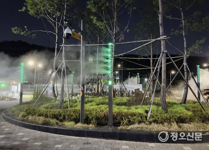 쿨링포그는 대기 중에 미세 물안개를 분사해 주변 온도를 3~5도 낮춰주는 폭염 저감 장치로 주민들의 온열질환 예방에 도움을 준다.