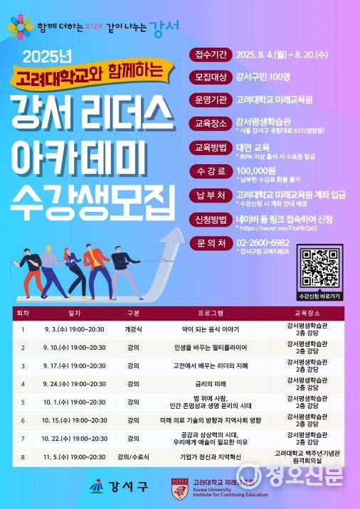 정오신문 관리자 기자 | 서울 강서구가 8월 4일부터 ‘2025 강서 리더스 아카데미’ 수강생 100명을 모집한다고 밝혔다.