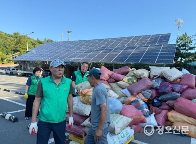 이날 새마을부녀회원과 새마을지도자들은 각 지역에서 모인 헌 옷 15톤을 수거하며 구슬땀을 흘렸다.
