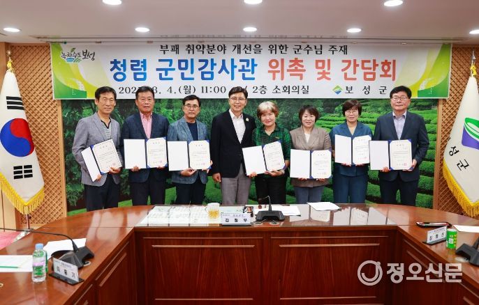 정오신문 관리자 기자 | 보성군은 4일, 군민이 직접 참여하는 ‘제1기 청렴 군민 감사관’ 위촉식을 개최하고 간담회를 통해 본격적인 활동에 나섰다고 밝혔다.