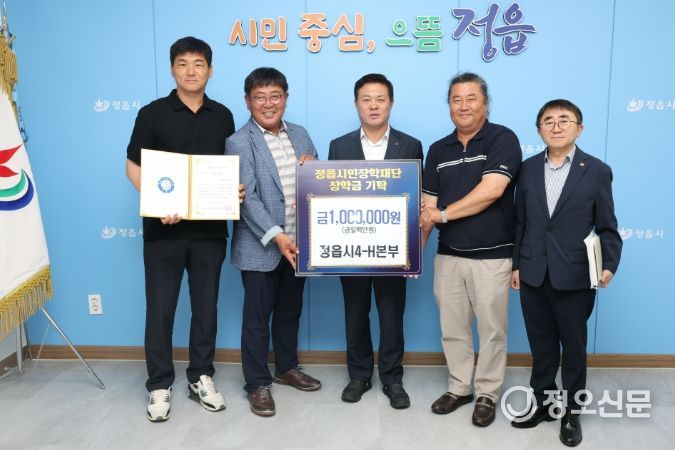 정오신문 관리자 기자 | 정읍시4-H본부는 4일 한마음대회에 보내준 지역사회의 성원에 보답하고자 장학금 100만원을 정읍시민장학재단에 기탁하며, 미래세대 인재 육성에 따뜻한 뜻을 전했다.