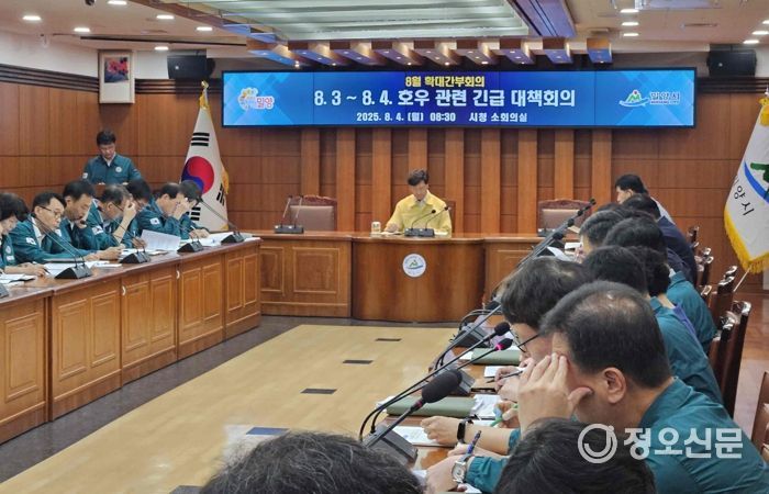 정오신문 관리자 기자 | 경남 밀양시는 4일 시청 소회의실에서 지난 3일 저녁부터 4일 새벽에 걸친 집중호우 관련 긴급 대책회의를 개최하고 피해 상황을 점검했다고 밝혔다.
