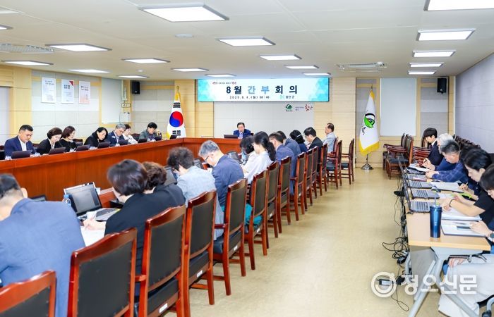 정오신문 관리자 기자 | 함안군은 4일 오전 군청 별관 3층 중회의실에서 조근제 함안군수 주재로 8월 간부회의를 개최했다.