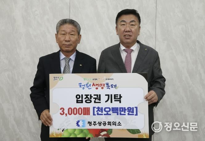 정오신문 관리자 기자 | 청주상공회의소는 4일 청주시청을 방문해 2025 청원생명축제에 소외된 이웃들이 함께할 수 있도록 입장권 3,000매(1,500만원 상당)를 청주시에 기탁했다.