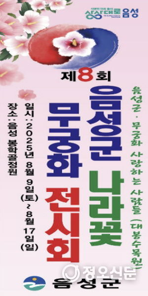 정오신문 관리자 기자 | 음성군이 광복 80주년을 맞아 ‘제8회 나라꽃 무궁화 전시회’를 이달 9일부터 17일까지 9일간 봉학골 지방정원에서 개최한다고 밝혔다.