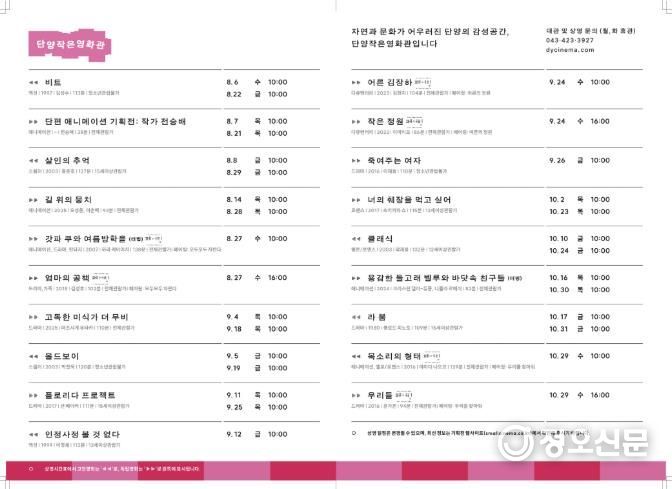 전국 68개 작은영화관 가운데 단양을 포함한 15개소만이 운영처로 선정돼 대관료 및 홍보비를 지원받아 기획전을 열게 됐다.