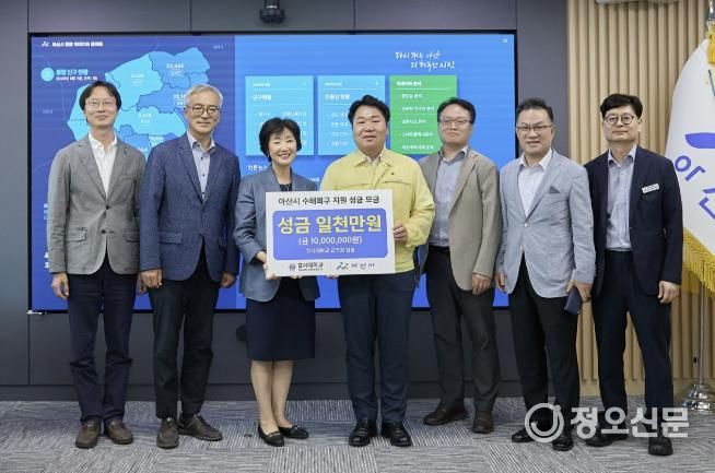 정오신문 관리자 기자 | 아산시가 4일 호서대학교로부터 최근 집중호우에 따른 수해복구를 돕기 위한 성금 1,000만 원을 전달받았다고 밝혔다.