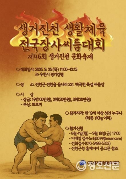이번 대회는 전국 생활체육 씨름인을 대상으로 마련됐으며, 9월 25일 오전 11시, 백곡천 특설 씨름장에서 열릴 예정이다.
