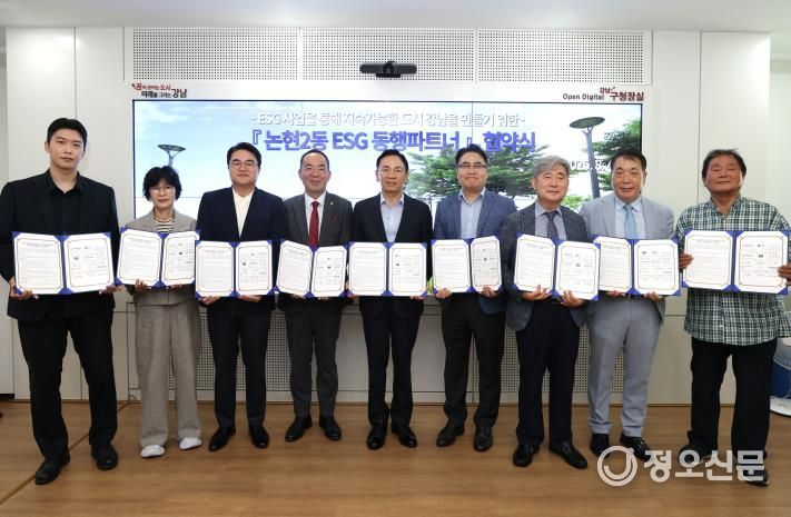 조성명 강남구청장은 “민간과 공공이 함께 만든 이번 파트너단이 논현2동을 지속가능한 녹색 마을, 함께 잘사는 복지공동체로 이끄는 밑거름이 되길 바란다”며 “앞으로도 다양한 지역 주체들과의 협력을 통해 ESG 가치를 생활 속에 뿌리내릴 수 있도록 최선을 다하겠다”고 말했다.