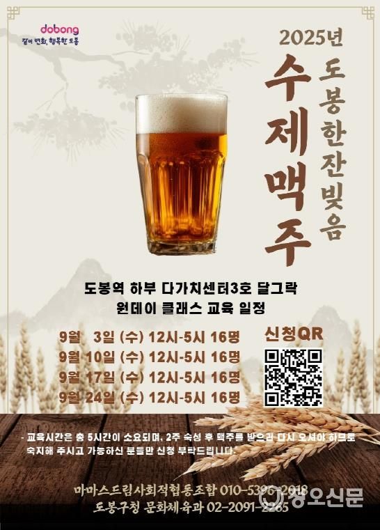 정오신문 관리자 기자 | 서울 도봉구가 9월 한 달간 ‘수제맥주 원데이 클래스’를 운영한다.