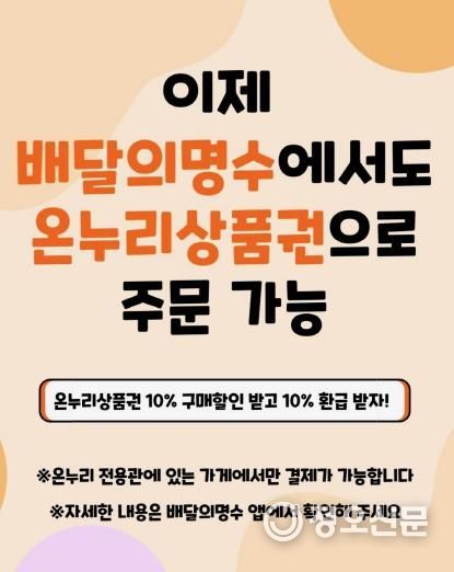 실제로 시는 4월 말부터 한국조폐공사와 온누리상품권을 ‘배달의명수’에서 결제할 수 있도록 시스템 연동 협의를 추진해왔다.