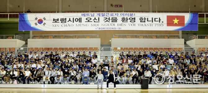 시는 이날 보령종합체육관에서 외국인 계절근로자, 고용주, 초청가족 350여 명이 참여한 가운데 근로자 사전교육을 실시했다.