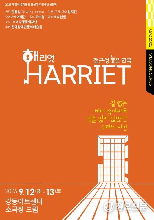 접근성 높은 연극 '해리엇'은 오는 9월 12일~9월 13일 강동아트센터 소극장 드림 무대에 오를 예정이다. 이번 공연은 한국장애인문화예술원 후원 '2025년 무장애 문화 향유 활성화 지원사업' 선정작으로, 강동문화재단이 공연예술을 매개로 지역사회 장애 인식 개선을 위해 기획·제작해 선보이게 됐다.