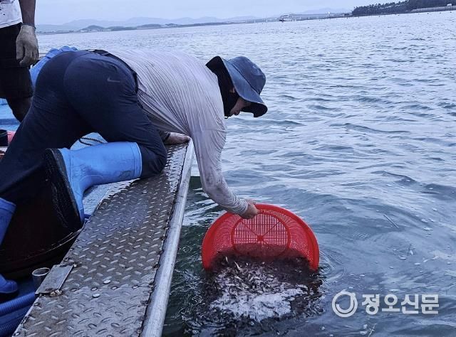 정오신문 관리자 기자 | 신안군은 고수온에 따른 양식어류 폐사 위험에 선제적으로 대응하고자 지난 8월 5일 압해읍 해역에서 양식 중인 조피볼락 14만 마리를 긴급 방류했다.