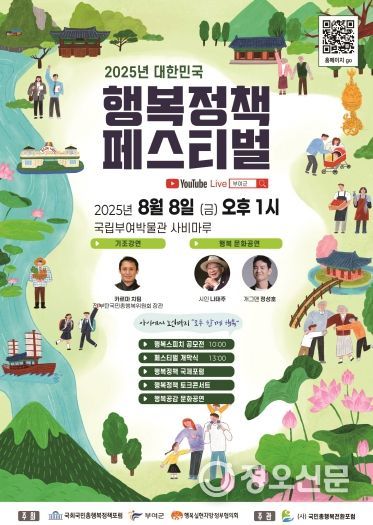 정오신문 관리자 기자 | 부여군은 오는 8월 8일 오후 1시 국립부여박물관 사비마루에서‘2025 대한민국 행복정책 페스티벌’을 개최한다. 대한민국 행복정책 페스티벌은 세대별·지역별 행복 격차 해소를 위해 정책 사례 등을 공유하고 행복정책 비전과 실행 전략을 모색하는 자리이다.