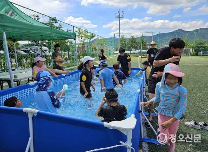 정오신문 관리자 기자 | 영동교육지원청과 영동군의 협력사업인 영동온마을배움터 사업에 참여한 아이들이 여름을 맞아 다양한 물놀이 피서 활동을 즐기고 있다. 영동군 추풍령면 구름바람도서관(대표 이성진)의 주도로 8월 한 달 동안 추풍령 아이들 20여명이 지역에서 설치한 물놀이장에서 물놀이를 할 수 있다.