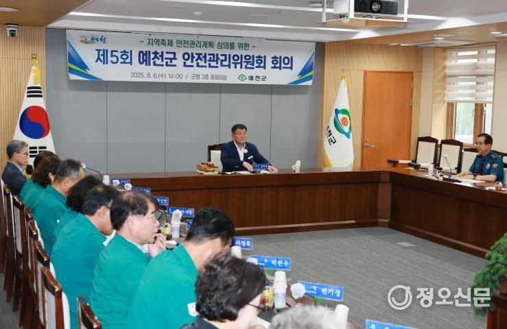 정오신문 관리자 기자 | 예천군은 6일, 군청 3층 중회의실에서 ‘제5회 예천군 안전관리위원회’를 열고 8월 개최될 예정인 예천곤충페스티벌과 경북도청신도시 버블런의 안전관리계획을 심의했다.