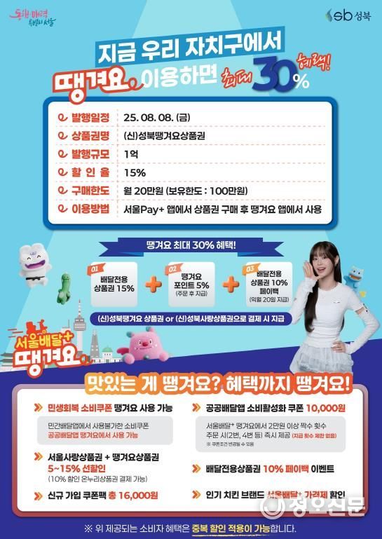 정오신문 관리자 기자 | 서울 성북구가 오는 2025년 8월 8일 오전 10시부터 1억 원 규모의 ‘성북땡겨요상품권’을 발행한다고 밝혔다.